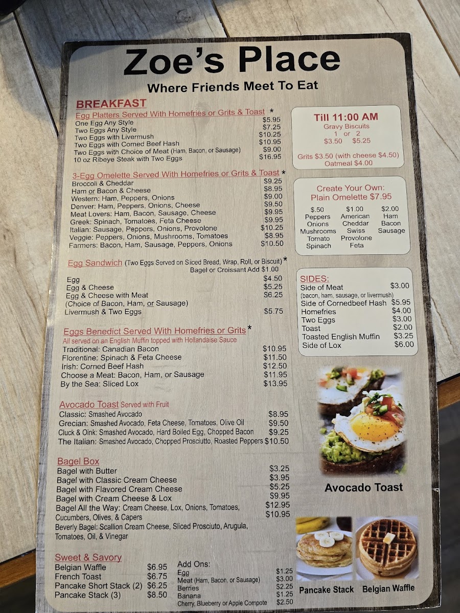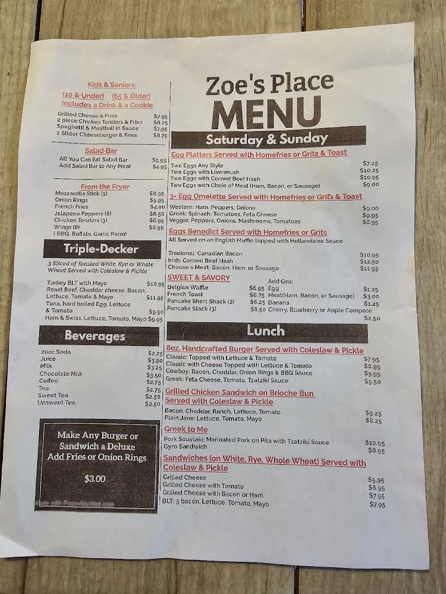 Located in the heart of Columbus, NC, Zoe's Place offers a delightful array of comfort food that’s both fresh and flavorful. Whether you’re in the mood for a quick bite or a leisurely meal, the Zoe's Place Menu is sure to satisfy every craving. From hearty sandwiches and wraps to delicious salads and homemade sides, each dish is crafted with love and attention to detail. With a cozy atmosphere and a variety of options, this spot is perfect for casual dining with friends and family. No matter what you choose, you're guaranteed a satisfying meal that’ll have you coming back for more.